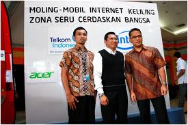 Intel dan Telkom meluncurkan “Zona Seru Cerdaskan Bangsa”, sebuah pusat pembelajaran berteknologi tinggi didukung koneksi broadband, hadir dalam bentuk sebuah minibus yang diberi nama mobile Broadband Learning Centre (mBLC) atau Mobil Internet Keliling (MOLING), di Perguruan Raksana Medan, sabtu (29/9). Minibus canggih ini dipersenjatai lengkap dengan PC dan berbagai perangkat keras lain dari merek-merek OEM pendukung, seperti Acer, Axioo, Lenovo, Asus, dan Toshiba.